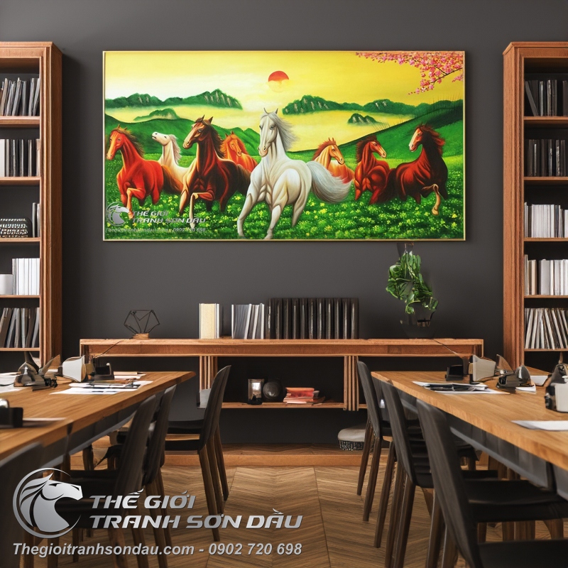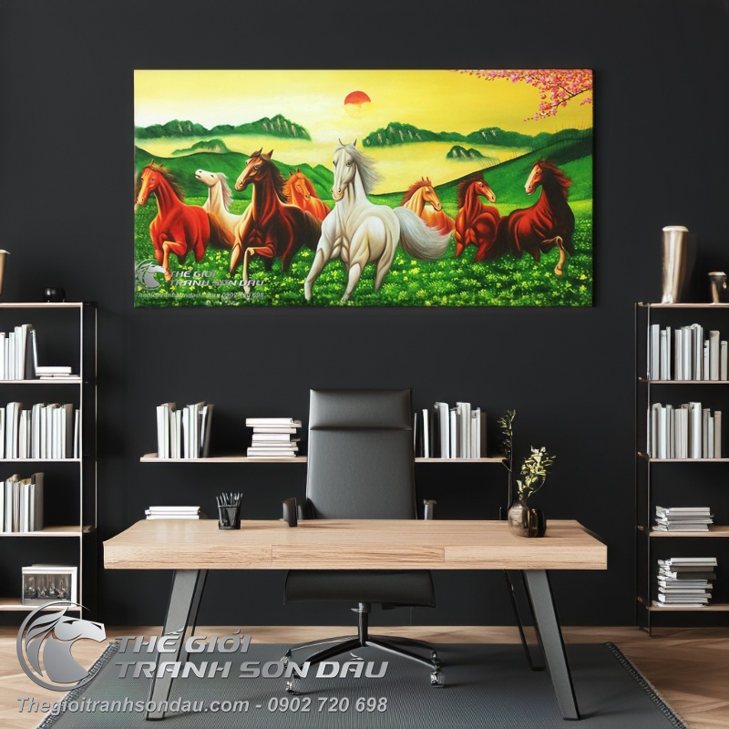 Tranh Bát Mã Truy Phong Cho Gia Chủ Mạng Kim