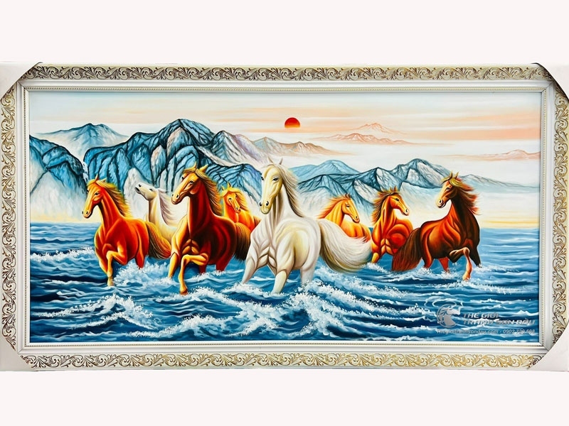 - Tranh vẽ mã đáo sơn dầu bình sơn đạp hải thể hiện khí thế mạnh mẽ vượt sơn băng biển tiến về phía trước không gì cản nổi. Với những nét vẽ mạnh mẽ khắc họa rõ nét sự uy dũng và cương mãnh của đàn ngựa qua từng bước tung vó, từng bó cơ đầy sức mạnh. Sản phẩm là lựa chọn rất lý tưởng để trang trí trong văn phòng công ty để thúc đẩy mọi người cùng nhau vượt qua những thách thức trong công việc & sự nghiệp chung, hướng tới những đỉnh cao hoàn toàn mới.