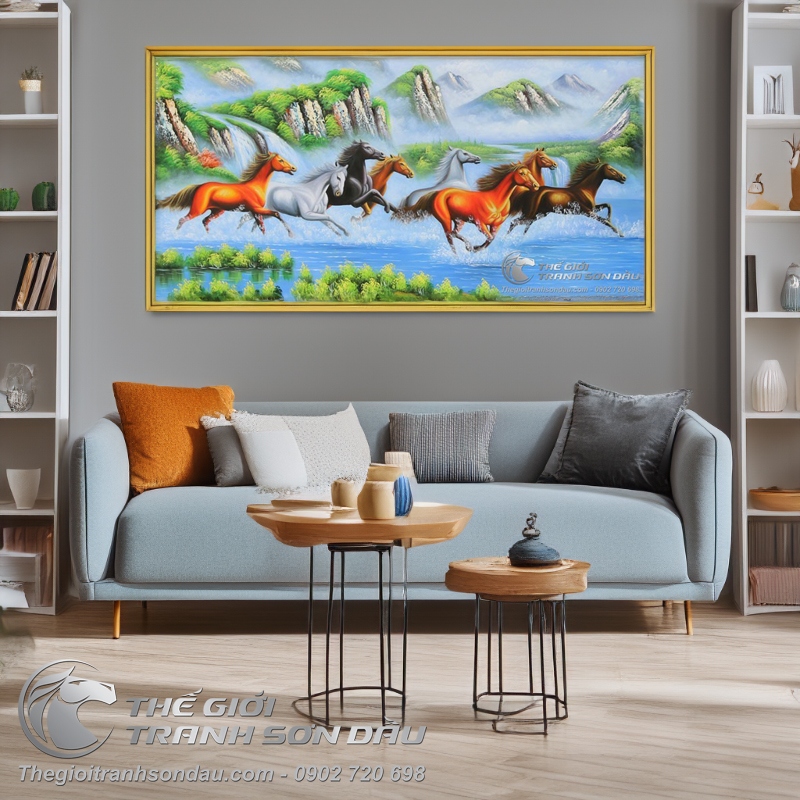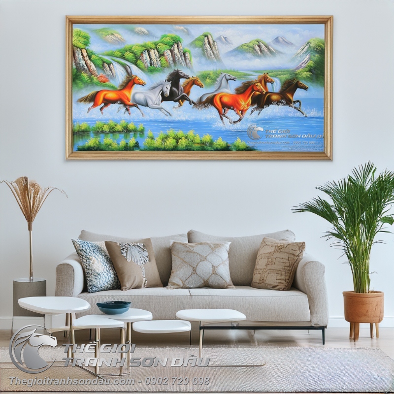 Tranh Bát Mã Truy Phong Cho Gia Chủ Mạng Kim