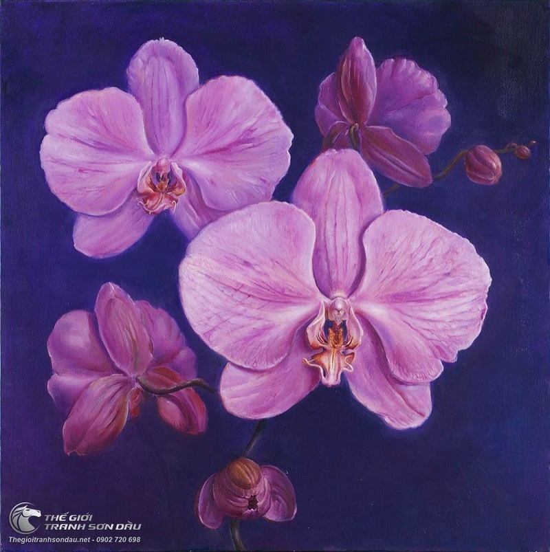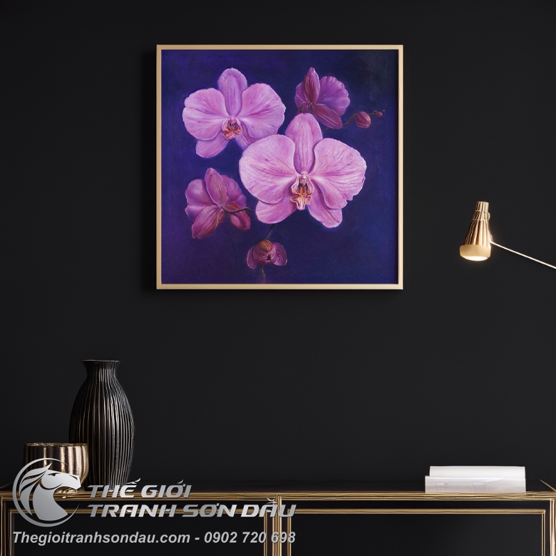 Tranh Sơn Dầu Vẽ Hoa Lan Tím Sang Trọng