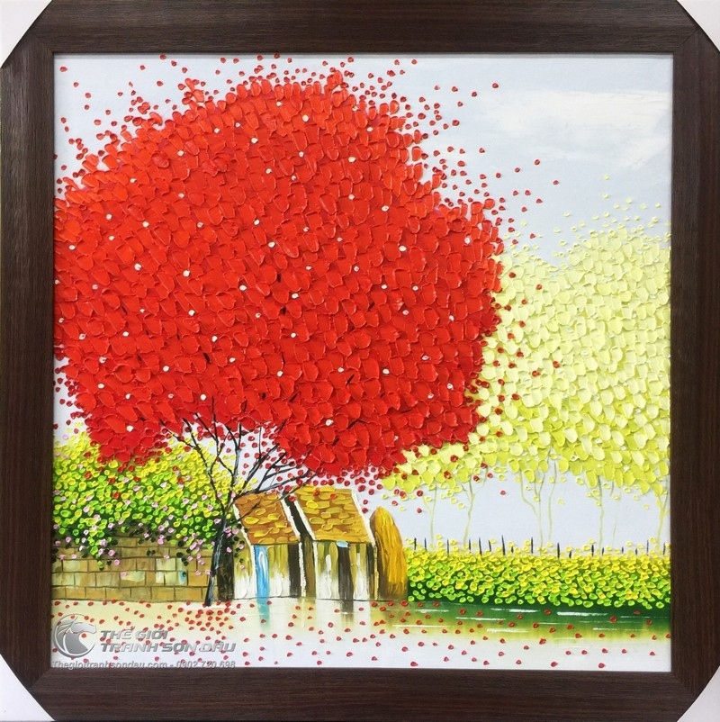 - Trong bức tranh vẽ sơn dầu này, người họa sĩ đã khéo léo trong việc đặt để các chi tiết trong tranh tạo ra các bố cục xa gần làm cho tổng thể bức tranh trở nên có chiều sâu và tạo độ mở cho không gian càng làm tăng thêm phần chân thực cho bức tranh. Hình ảnh nổi bật nhất hiện lên nơi góc phố ấy là hình ảnh của cây lá đỏ với những tán lá xum xuê tỏa ra khắp hướng như một ngọn lửa lớn đang rực cháy cả một góc trời, ngọn lửa của sự đam mê cháy bỏng, của sức mạnh, sự quyền lực, niềm tin mãnh liệt và cũng là màu của cảm xúc, nhiệt huyết và của tình yêu lứa đôi.