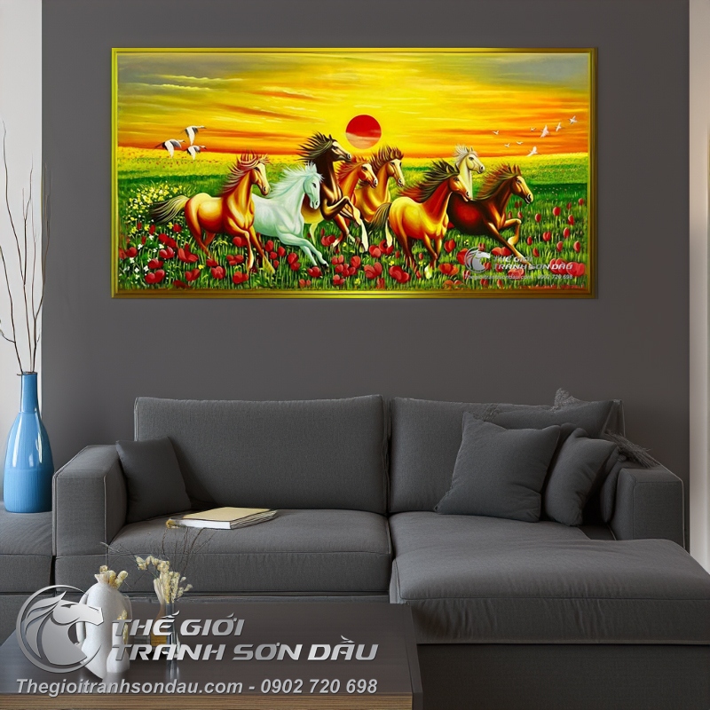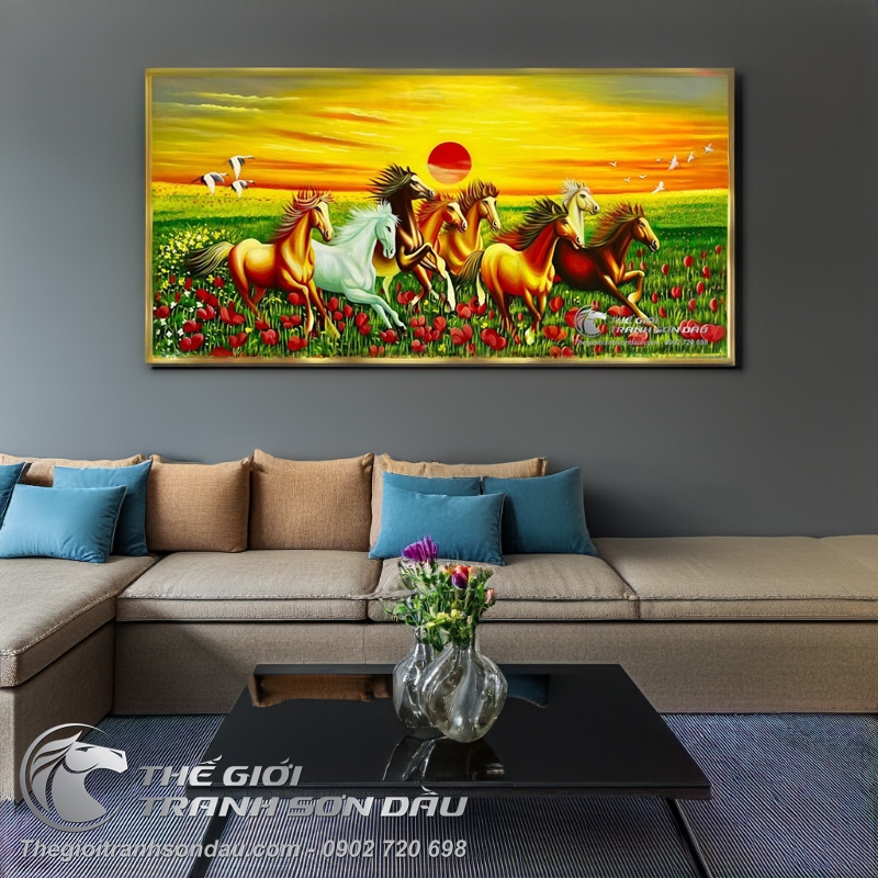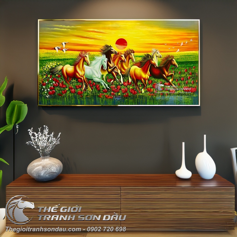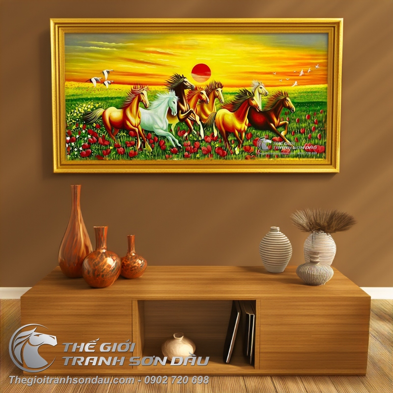 - Tất cả các yếu tố này kết hợp lại tạo nên một bức tranh sơn dầu nghệ thuật tuyệt đẹp, thể hiện sự tư duy sáng tạo và khả năng biểu đạt tài tình của người họa sĩ. Bức tranh ngựa 8 con chạy trong khung cảnh bình minh rực rỡ của thảo nguyên chắc chắn sẽ gợi lên nhiều cảm xúc và cảm nhận đẹp về thiên nhiên và sự tự do.