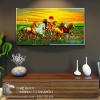 - Bức tranh đàn ngựa chạy trên buổi sáng bình minh tái hiện một khung cảnh của thảo nguyên rộng lớn, màu sắc đa dạng và sống động. Bình minh đang nở rộ, làm tỏa sáng cả bầu trời và mảnh đất dưới chân. Ánh nắng mặt trời mới nổi nhuộm trời một màu cam nhẹ nhàng, xen lẫn những ánh sáng và màu vàng ấm áp.