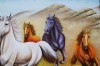 - Nổi bật nhất trong bức tranh sơn dầu này là hình ảnh tám con ngựa lực lưỡng đang chạy về một phía, mỗi con ngựa mang trên mình những màu sắc, dáng chạy và thần thái khác nhau nhưng đều thể hiện một sức mạnh to lớn, ý chí kiên cường, ánh mắt sắc lạnh, sáng ngời hướng về đích, để lại phía sau những dãy núi trập trùng phủ một màu cát bụi.