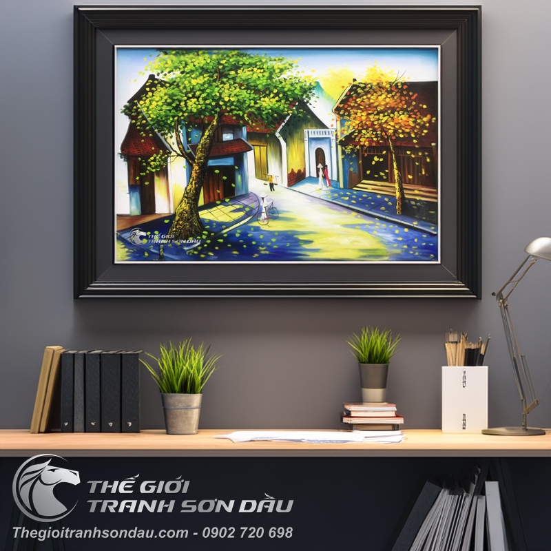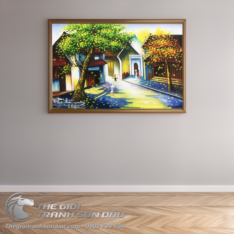 Tranh Sơn Dầu Phong Cảnh Phố Cổ Lá Vàng