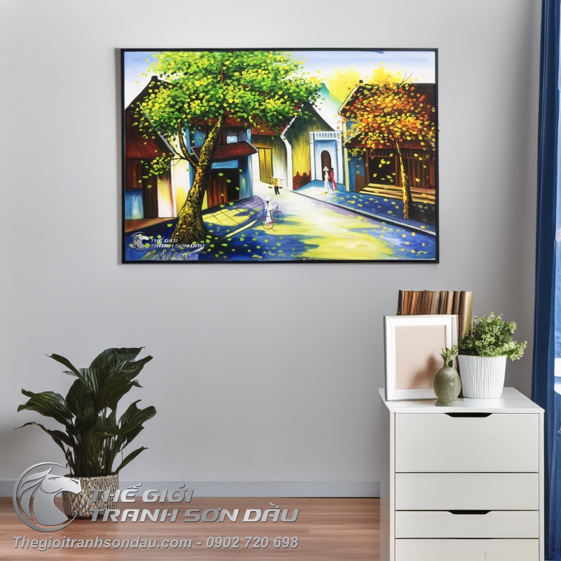 Tranh Sơn Dầu Phố Cổ Mùa Thu Xưa