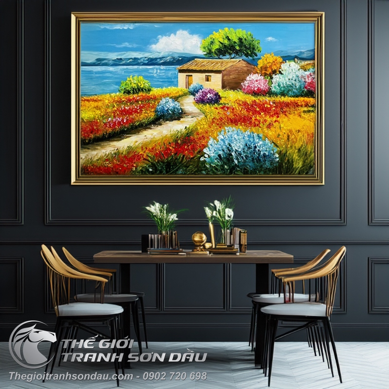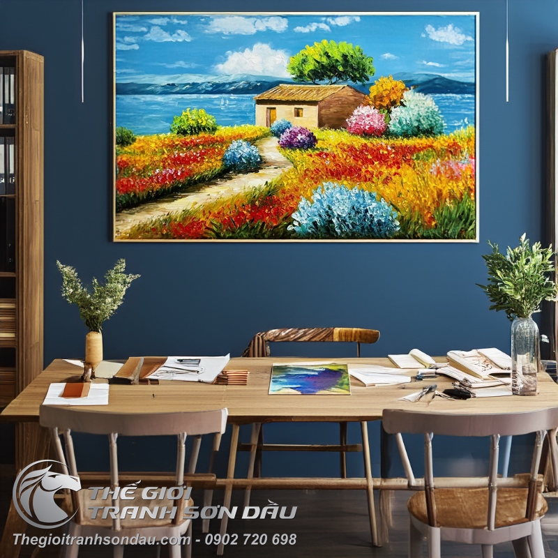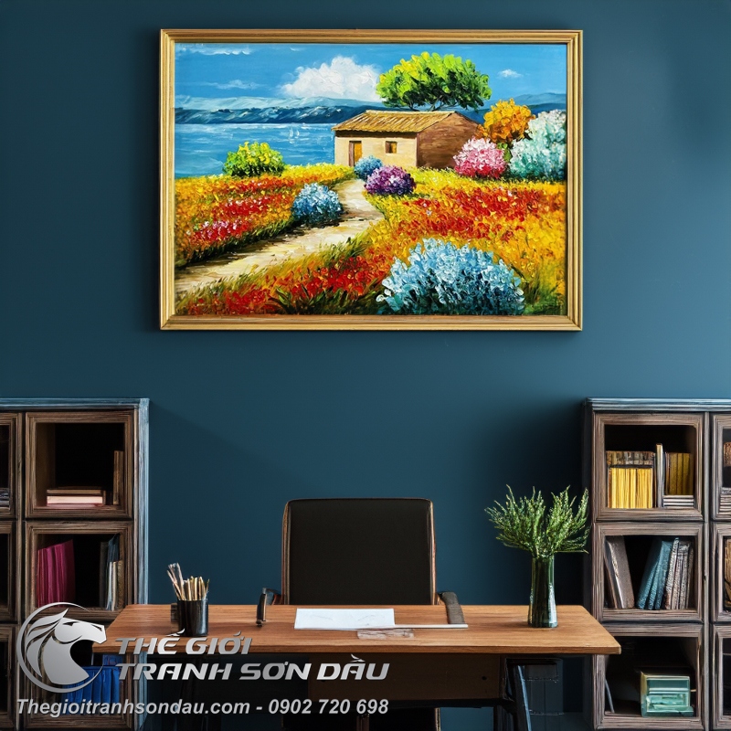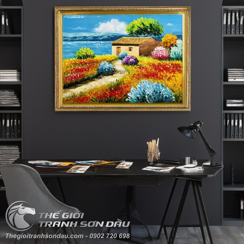 - Tranh sơn dầu phong cảnh ngôi nhà nhỏ ven hồ thuộc phân khúc tranh vẽ treo tường cảnh đẹp châu Âu. Lấy cảm hứng từ khung cảnh thiên nhiên mùa thu tráng lệ với sức sống rực rỡ của cỏ cây, thiên nhiên. Tái hiện một không gian rộng lớn, tràn ngập sức sống, mang lại những cảm hứng thú vị trong cảm nhận của người xem.