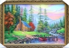 - Mặt trời dần lên cao giống như một ngọn lửa đang rực cháy lơ lửng trên những dãy núi phía xa xa tạo ra những hừng sáng đỏ cam tím sặc sỡ xua tan đi những lớp sương mờ ảo và dần hiện ra những tán cây lá kim đầy màu sắc. Và ngôi nhà gỗ mái xanh hiện ra với ánh sáng đèn hắt ra từ ngôi nhà, cột khói nghi ngút bên dòng suối đá đang chảy róc rách cùng với hình ảnh con thuyền gỗ nhỏ đang dập dìu theo những con sóng nhỏ thể hiện một sự sống mang lại sự ấm áp giữa khu rừng bình yên, tĩnh lặng này.