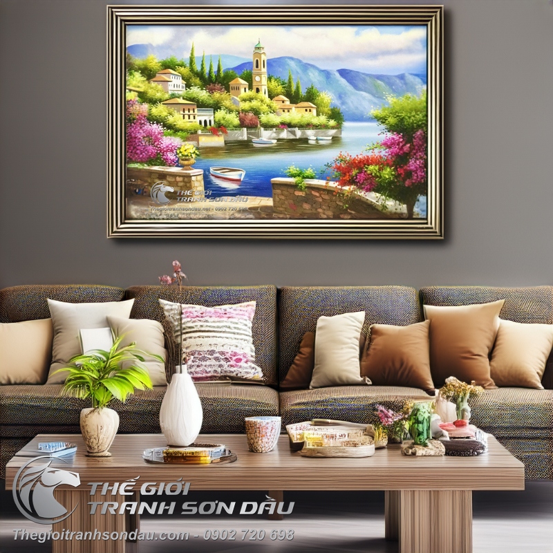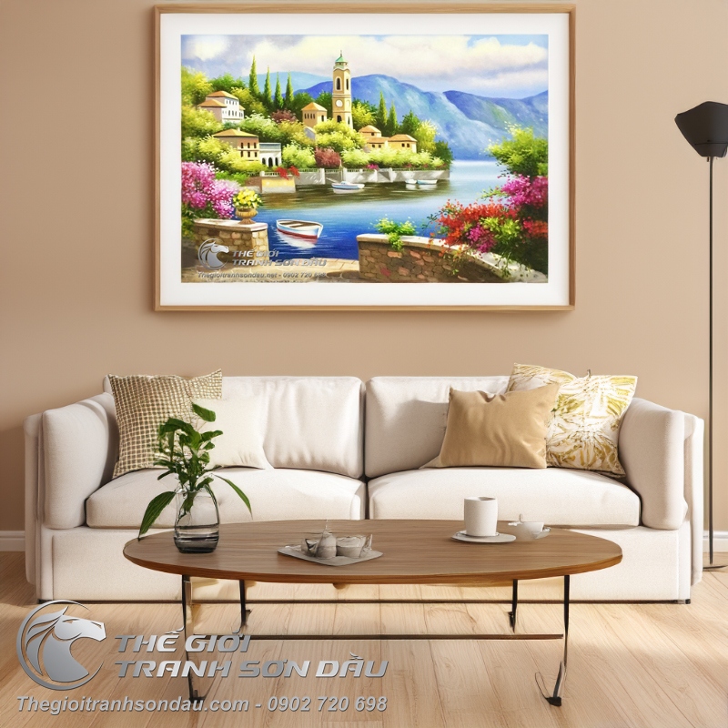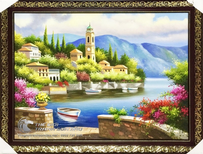 Tranh Sơn Dầu Góc Phố Nhỏ Bên Bờ Biển
