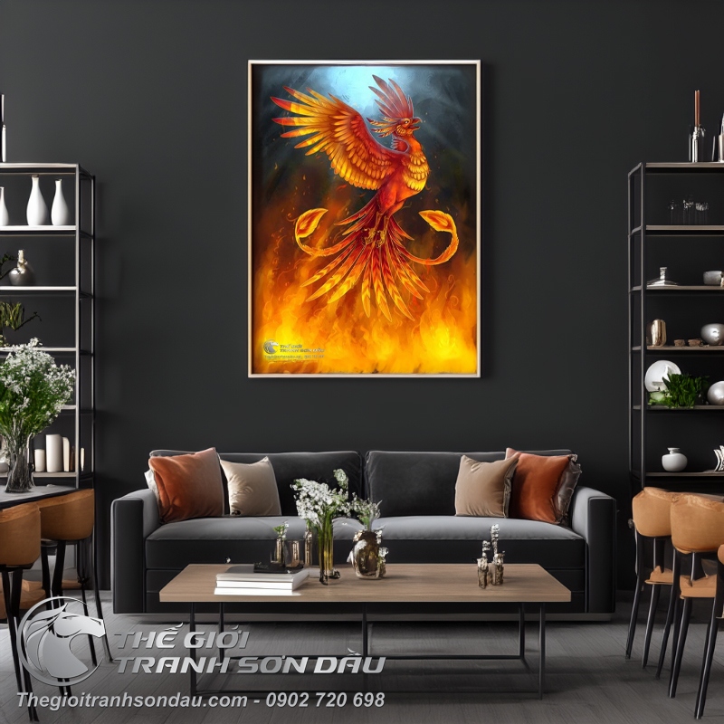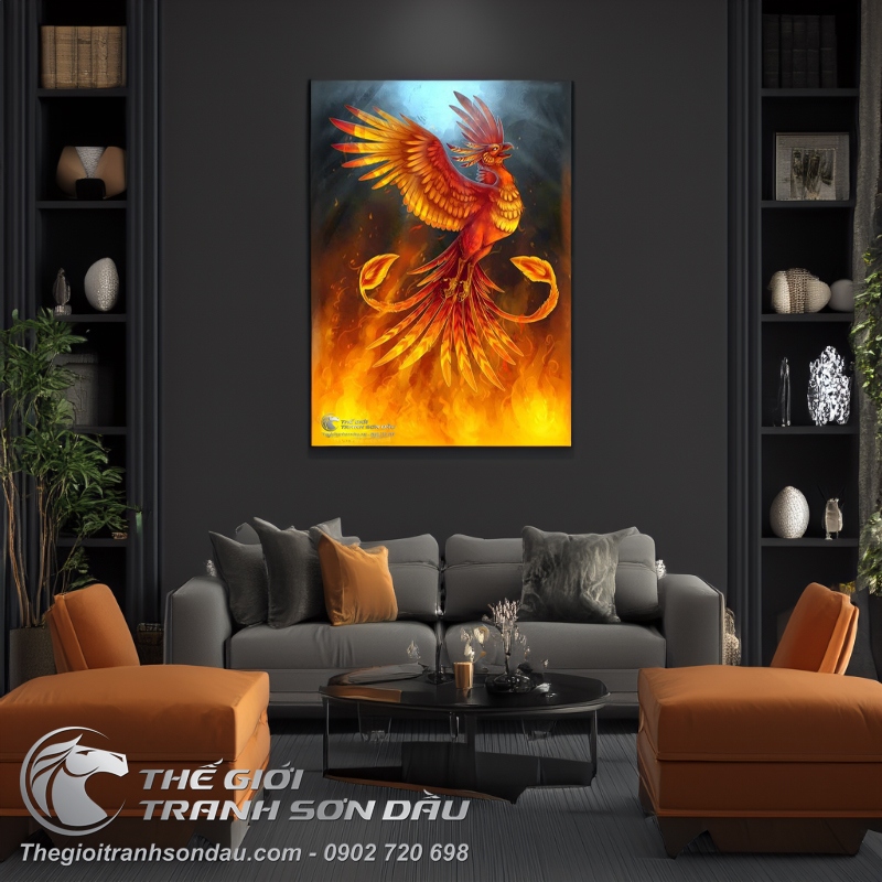 Tranh Sơn Dầu Chim Phượng Hoàng Lửa