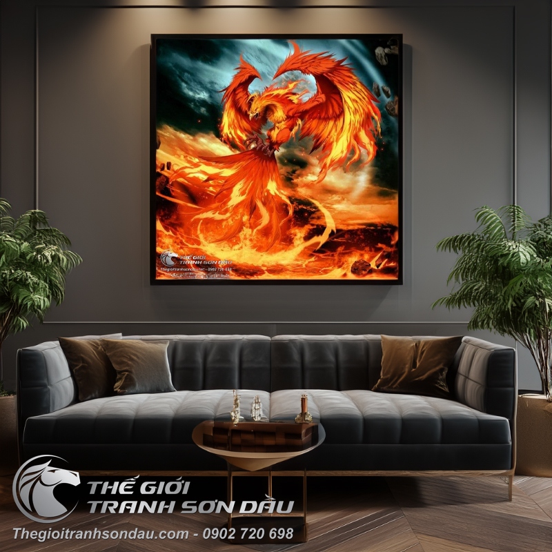 Tranh Sơn Dầu Chim Phượng Hoàng Lửa