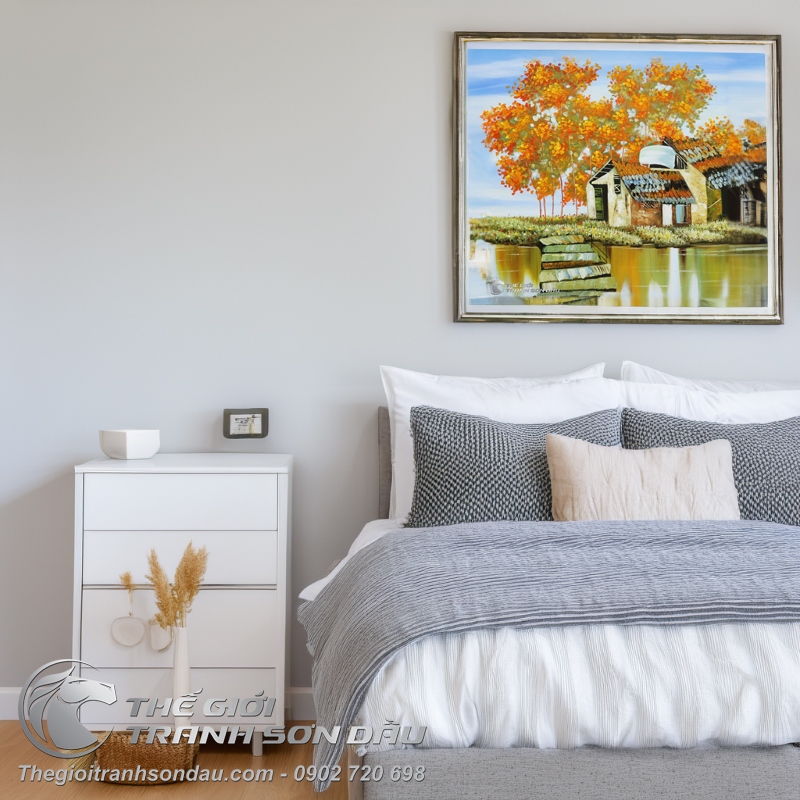 - Bức tranh vẽ cảnh đẹp quê hương mùa thu lá vàng phù hợp treo ở phòng khách, phòng ngủ, phòng ăn hay phòng làm việc để tạo ra một không gian thiên nhiên gần gũi, tràn ngập sắc thu mỗi khi ngắm nhìn để tìm thấy sự bình yên, thư thái và ấm cúng ngay giữa cuộc sống ồn ào, nhộn nhịp hiện đại ngày nay.