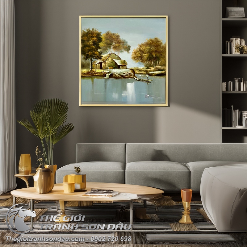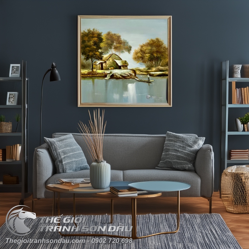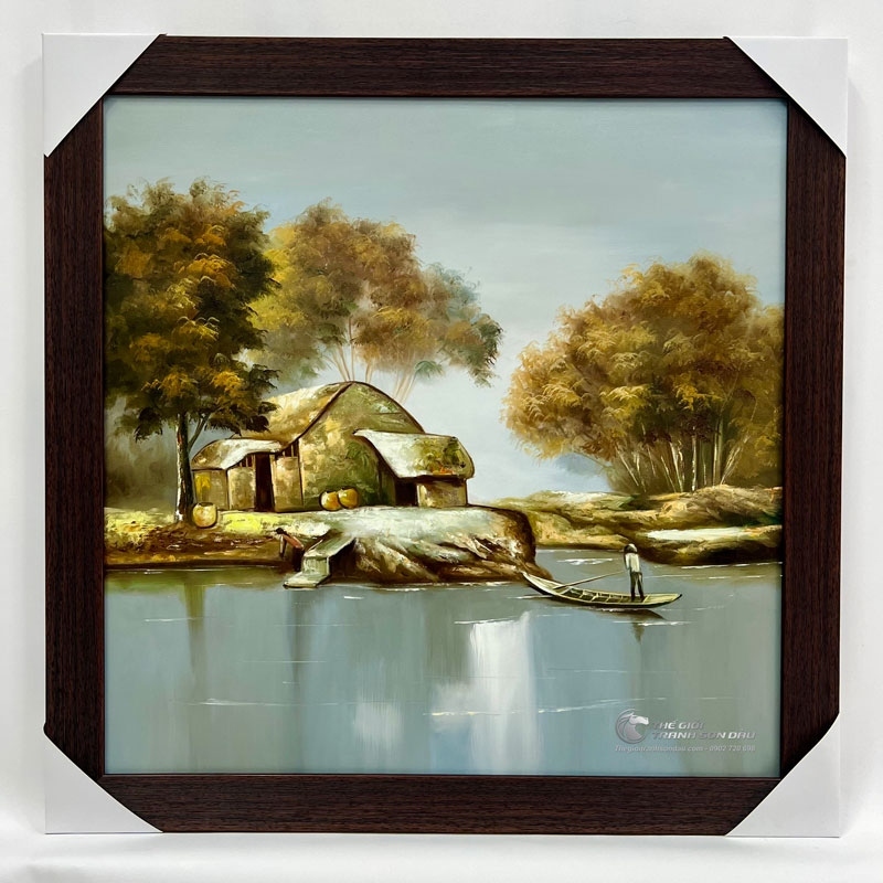 - Bầu trời trong tranh vẽ sơn dầu sắp chuyển sang màu mờ nhạt của hoàng hôn với những ánh nắng nhẹ, tạo nên không gian thơ mộng và lãng mạn. Ánh nắng cuối cùng của ngày tạo nên hiệu ứng ánh sáng đẹp mắt, làm nổi bật từng chi tiết nhỏ trong bức tranh. Mang đến cho người xem cảm nhận được sự thanh thản và yên bình của quê hương, cũng như cảm giác sự hoà mình vào vẻ đẹp tự nhiên và thanh khiết của cảnh quan làng quê vào buổi chiều tà đang buông xuống.