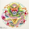 Tranh Vẽ Rồng Trắng Vây Cam cầm Lửa