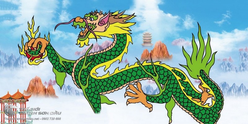 Tranh Vẽ Rồng Xanh Và Ngọn Núi