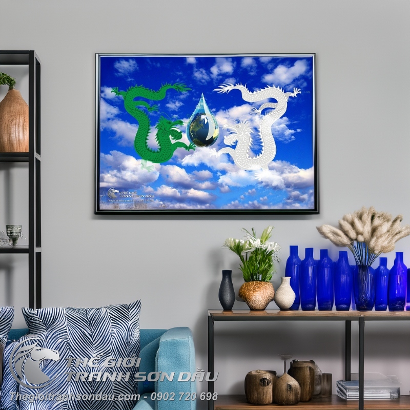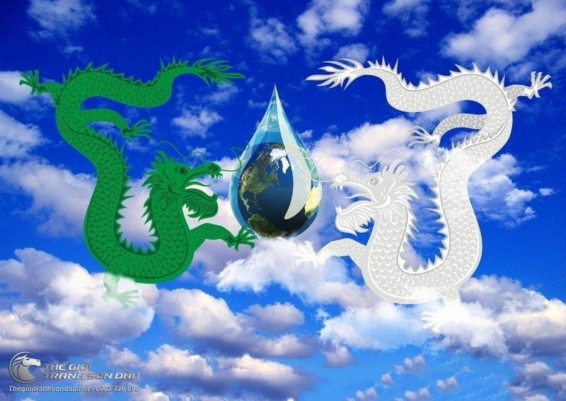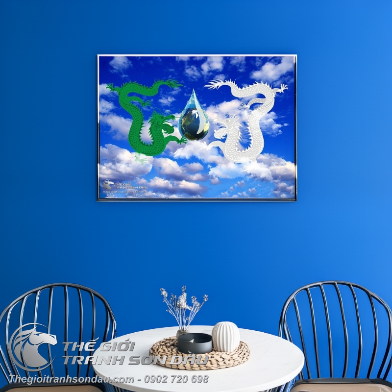 Tranh Vẽ Rồng Xanh Và Ngọn Núi