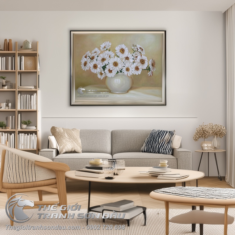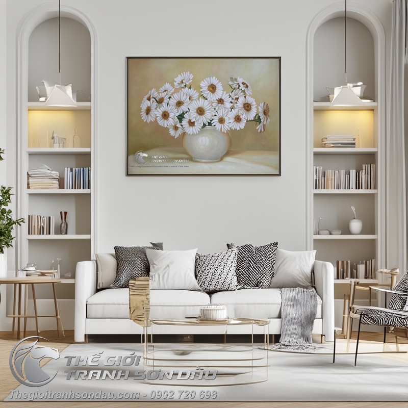 Tranh Vẽ Hoa Cúc Trắng Phong Cách Hiện Đại