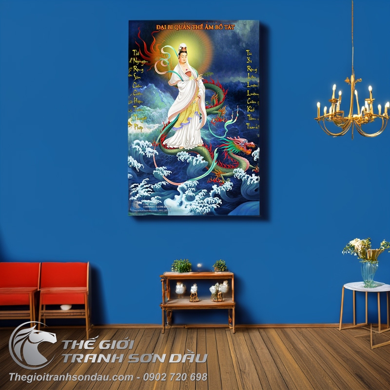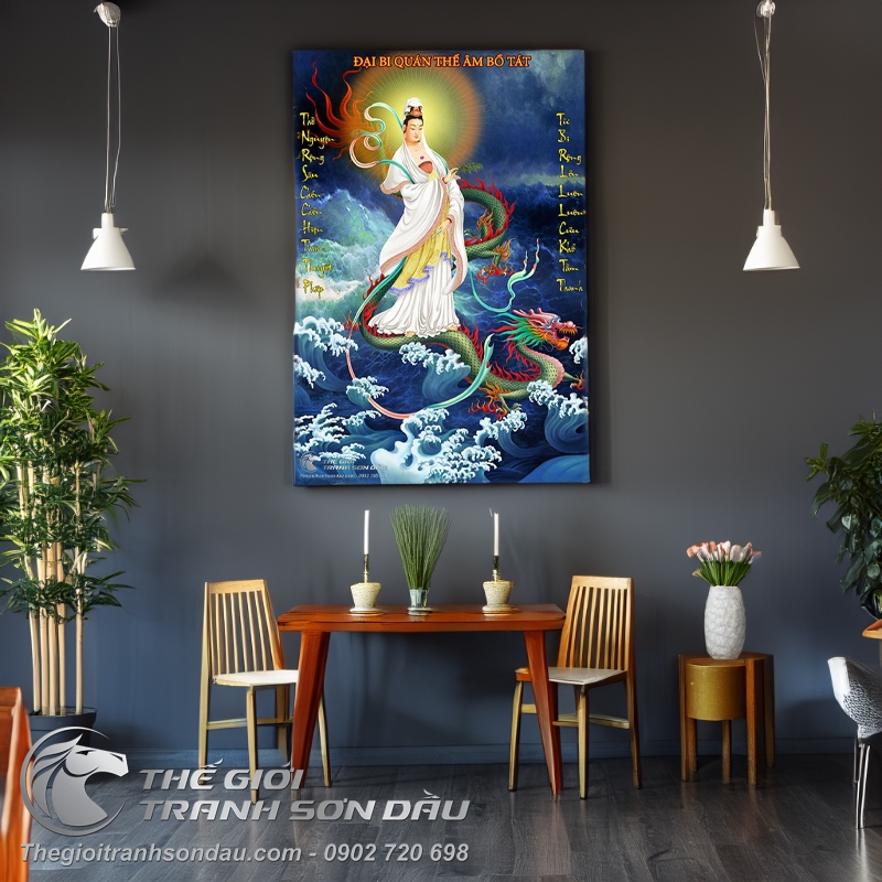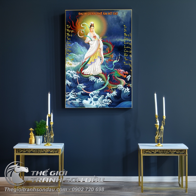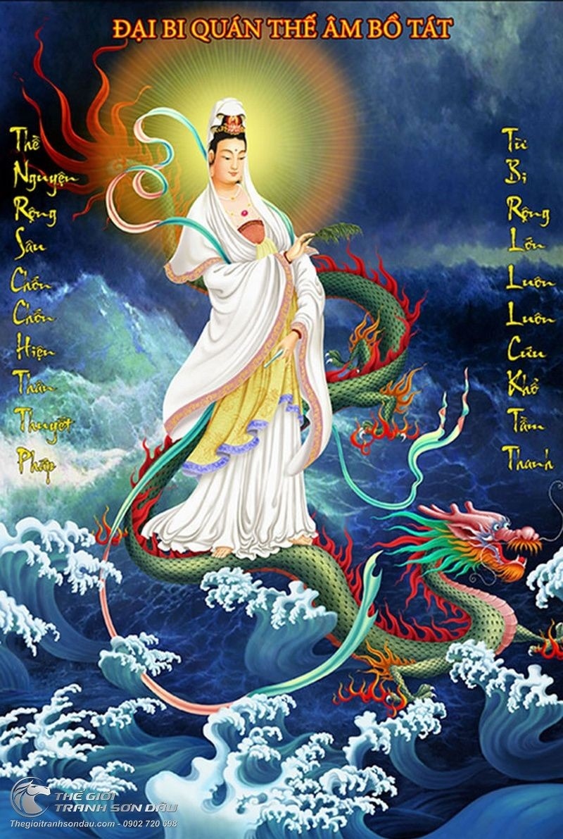 Tranh Sơn Dầu Bồ Tát Cưỡi Rồng Bay Đẹp
