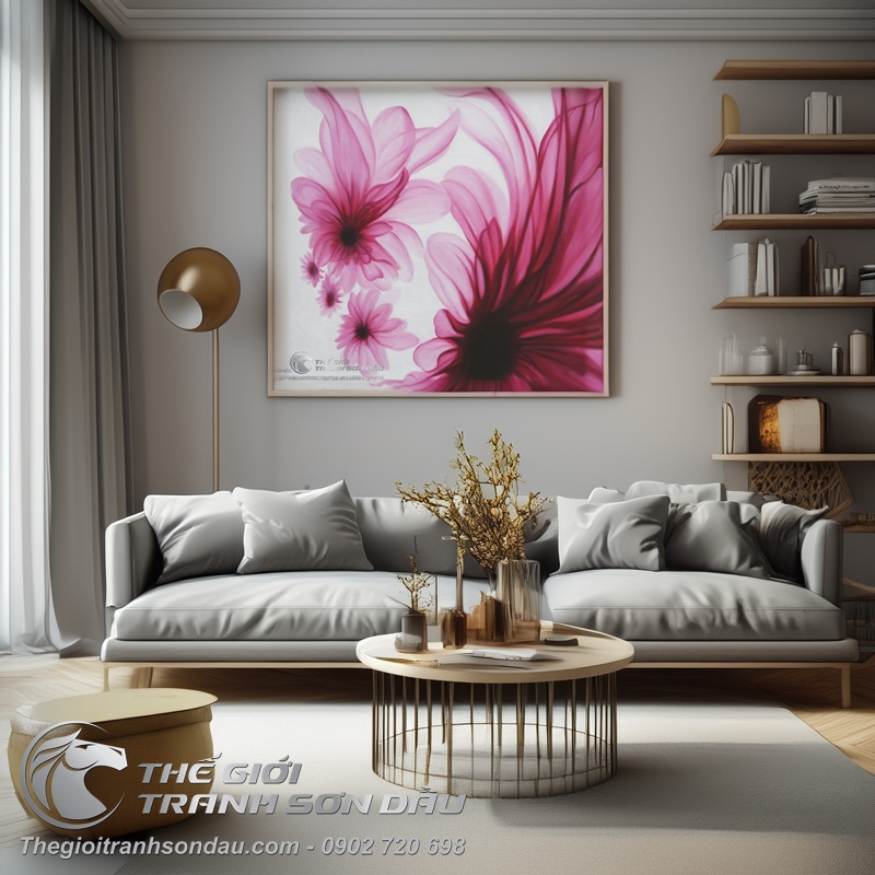 Tranh Sơn Dầu Bông Hoa Hiện Đại Màu Hồng