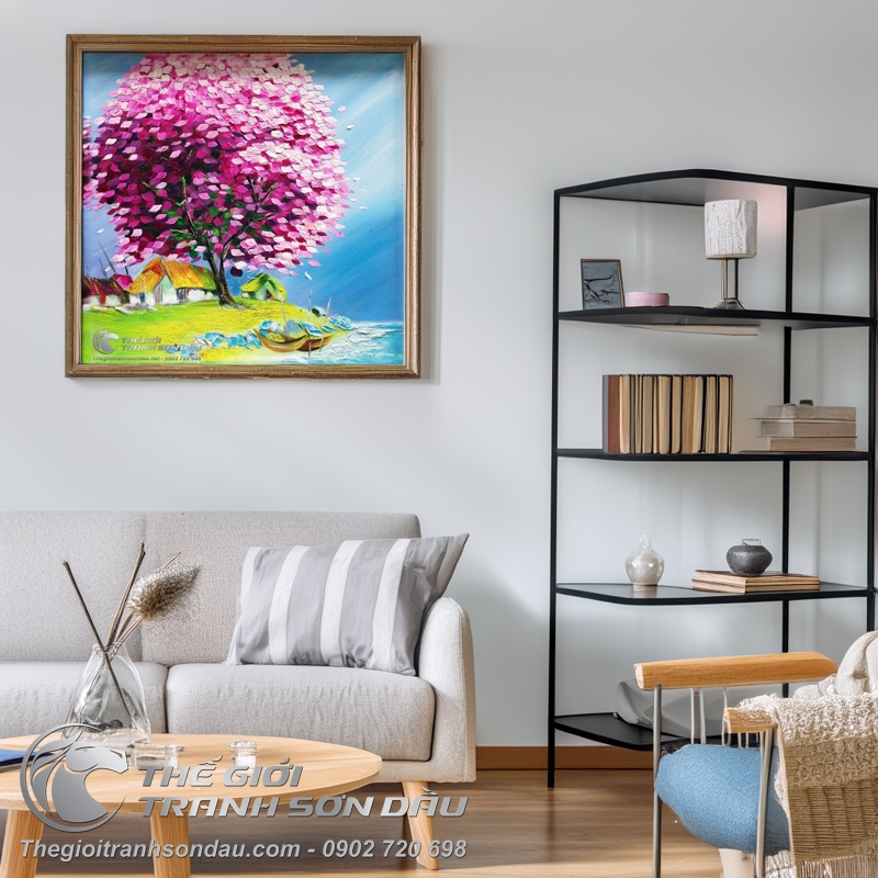 Tranh Sơn Dầu Cây Tím Phong Cảnh Việt Nam