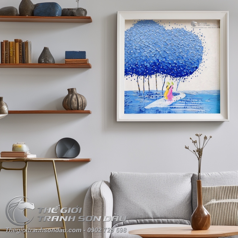 Tranh Sơn Dầu Cây Xanh Dương Phong Cảnh Việt Nam