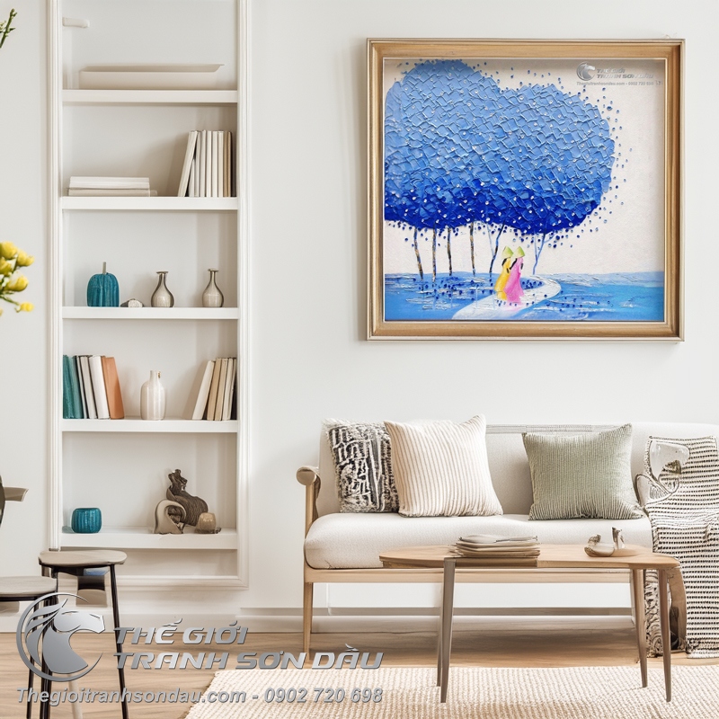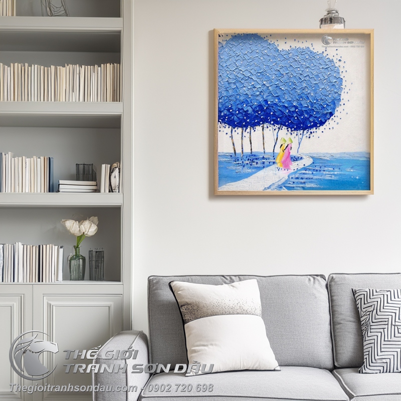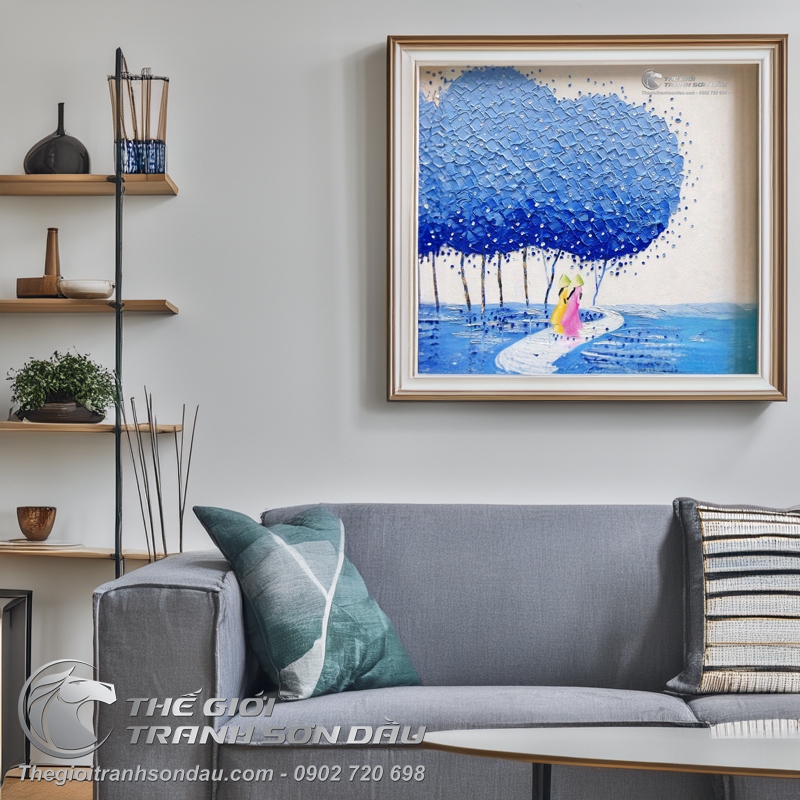 Tranh Sơn Dầu Phố Cây Màu Xanh Trời