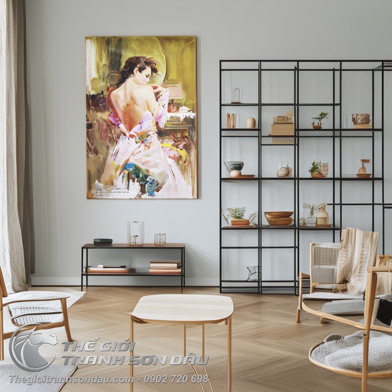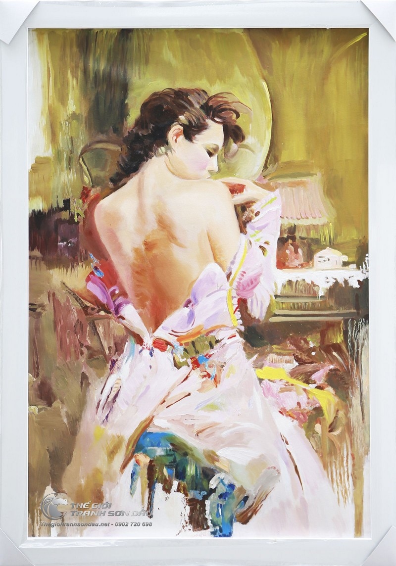 Tranh Sơn Dầu Cô Gái Bán Khỏa Thân Lưng Trần Quyến Rũ Đẹp