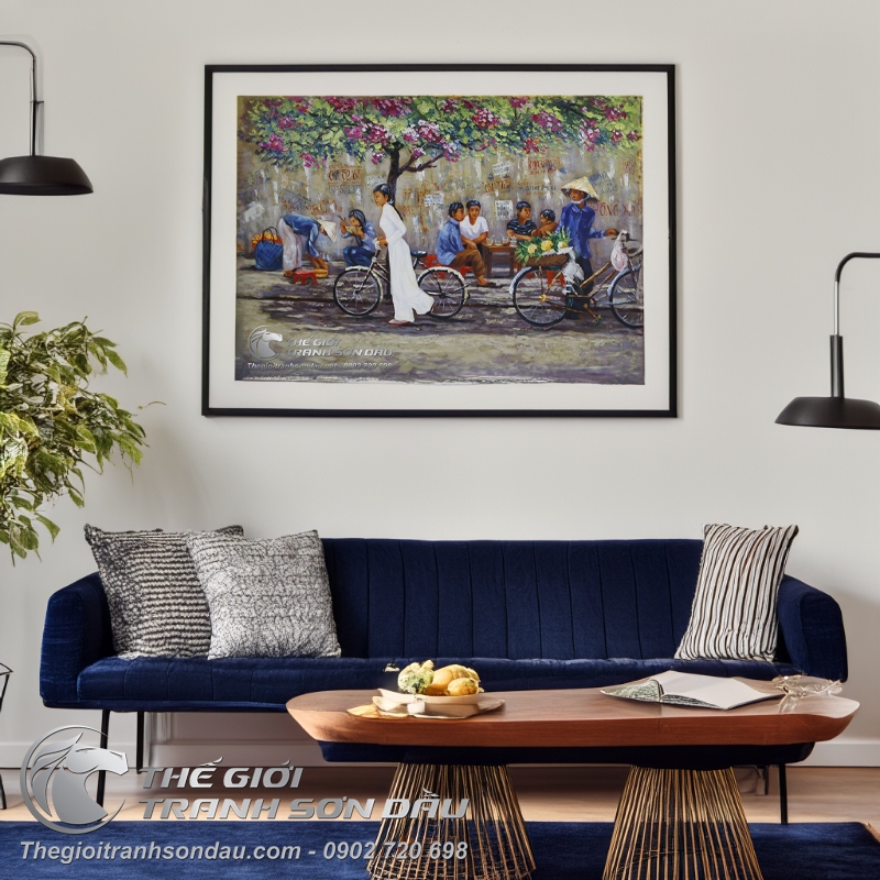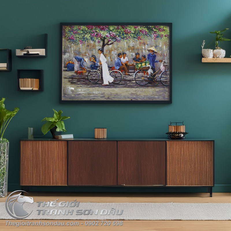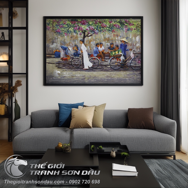 Tranh Sơn Dầu Người Bán Hoa Đi Xe Đạp