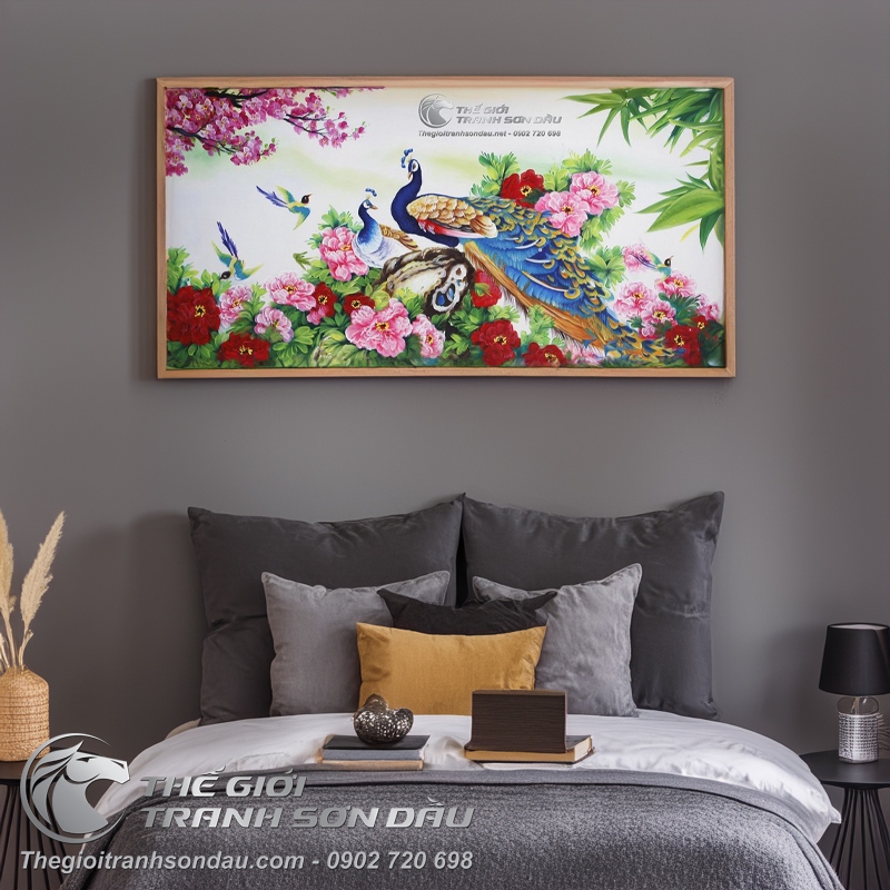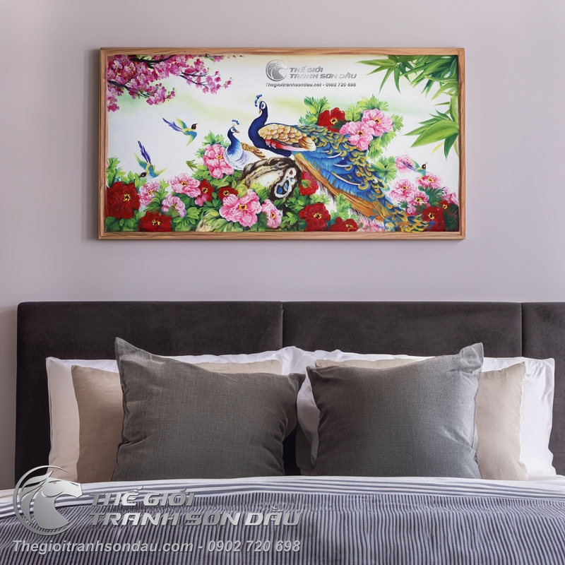 Tranh sơn dầu đôi công uyên ương, chất liệu tuyệt vời