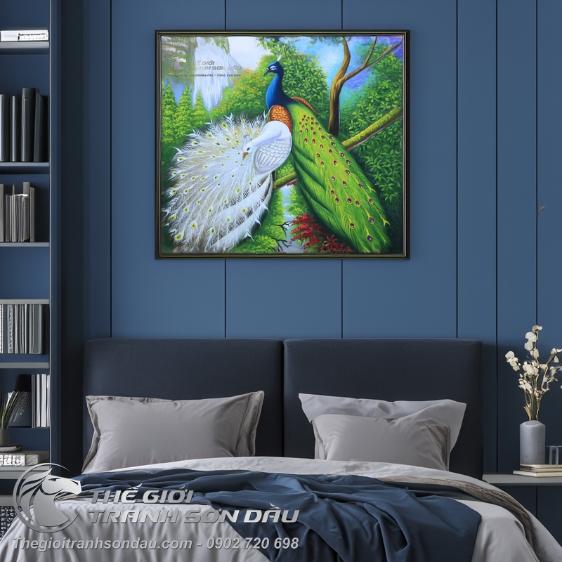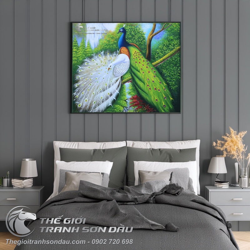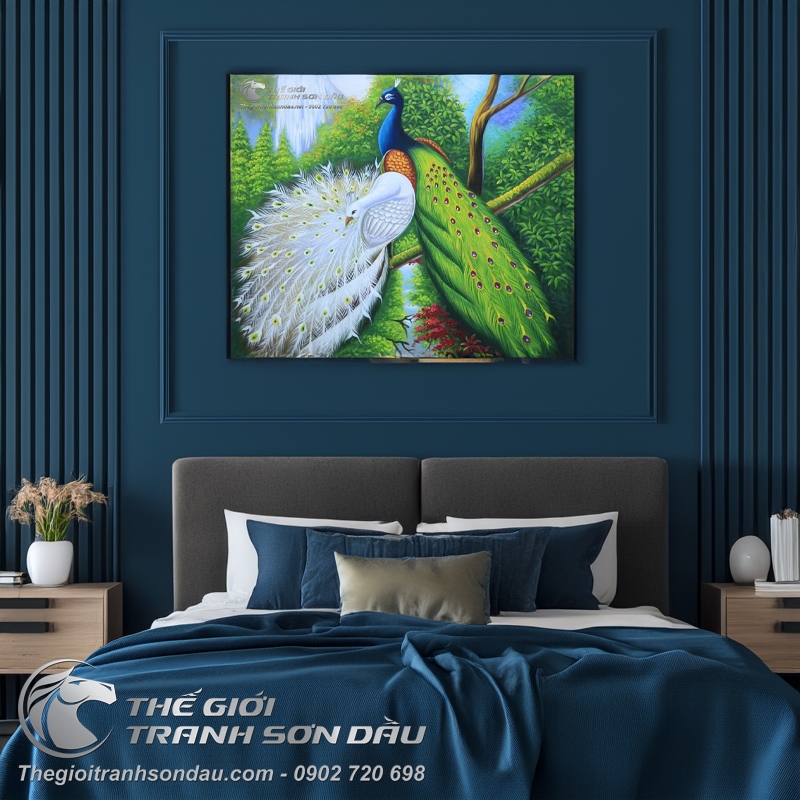 Tranh Sơn Dầu Đôi Công Uyên Ương Treo Phòng Ngủ