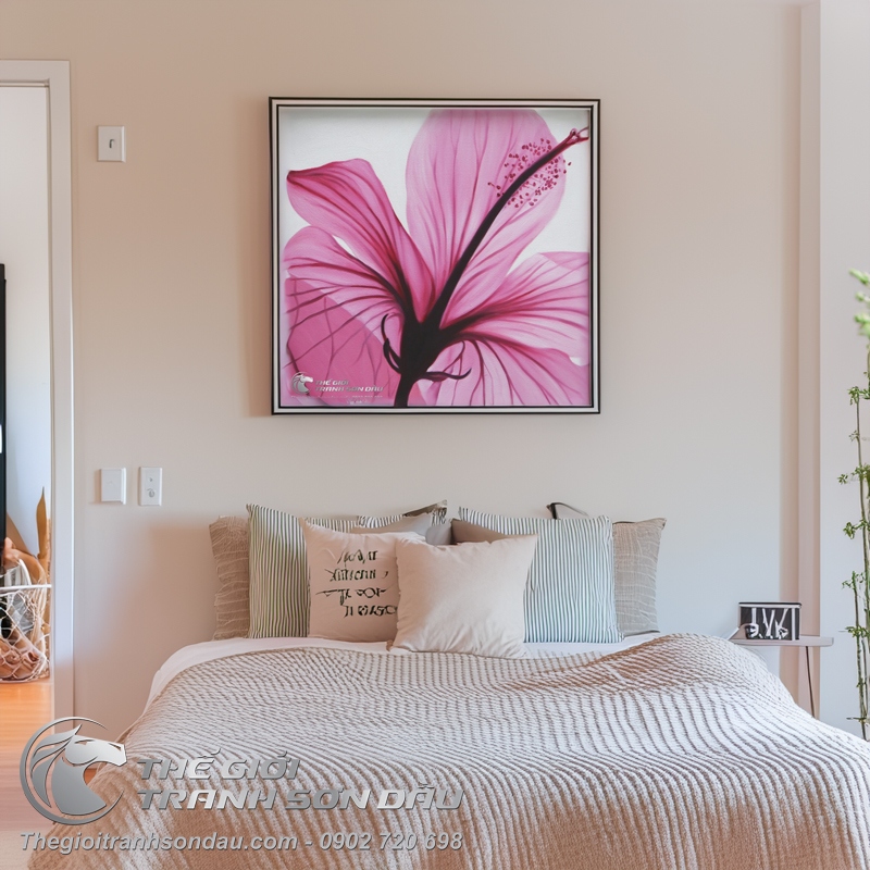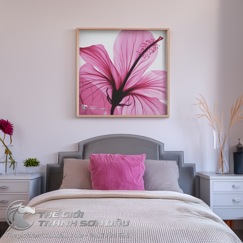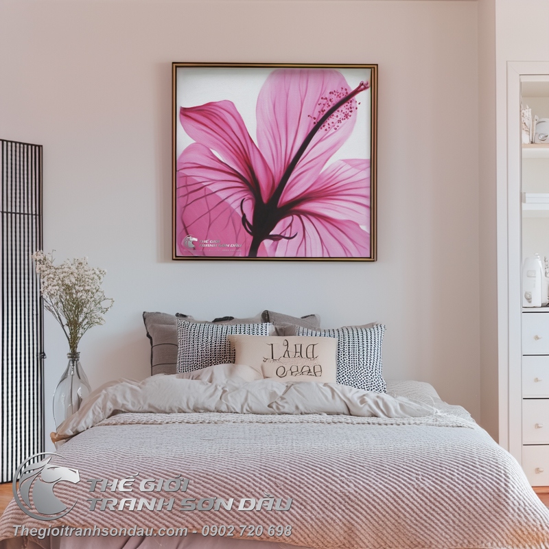 Tranh Sơn Dầu Hoa Hiện Đại Màu Hồng