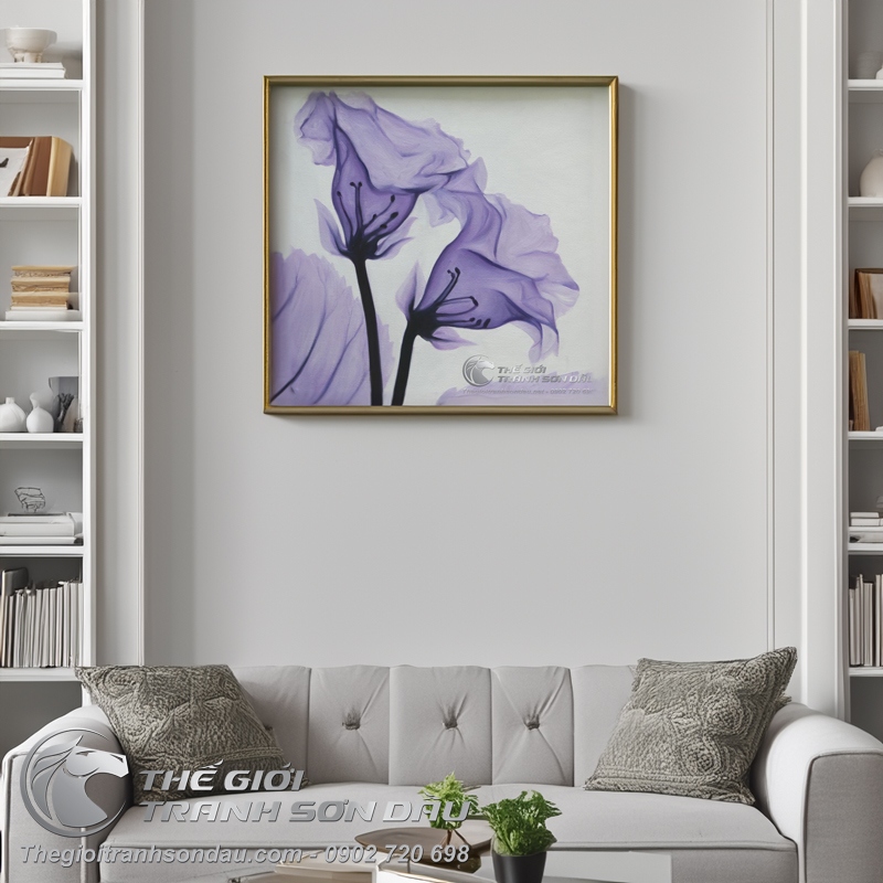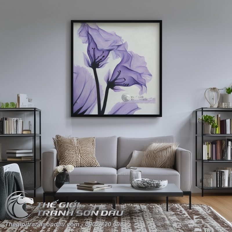 Tranh Sơn Dầu Hoa Hiện Đại Màu Tím