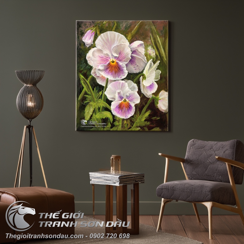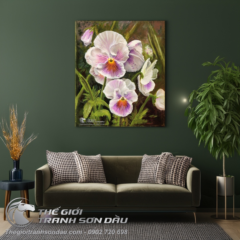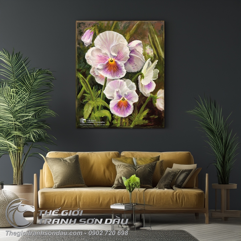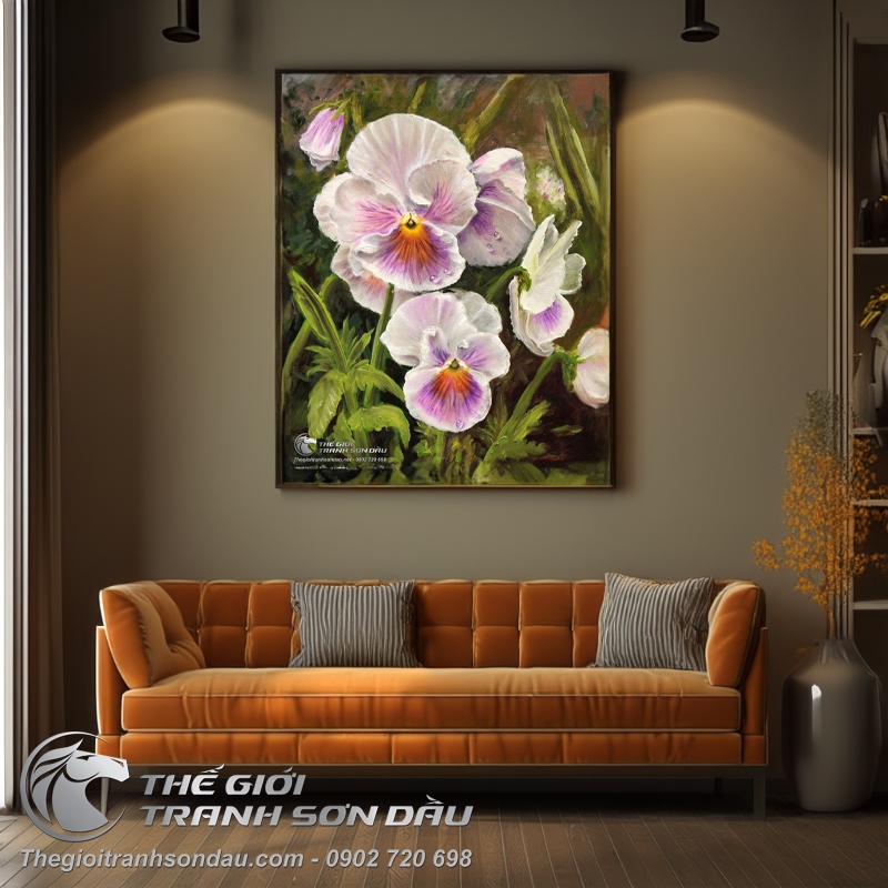Tranh Sơn Dầu Vẽ Hoa Lan Tím Sang Trọng
