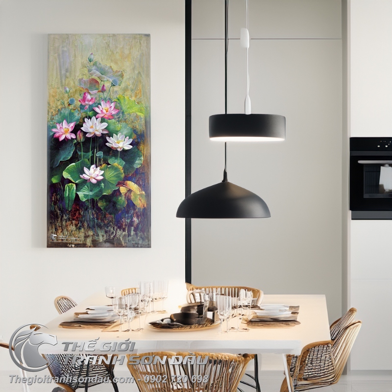 Tranh Sơn Dầu Hoa Sen Khổ Dọc