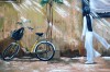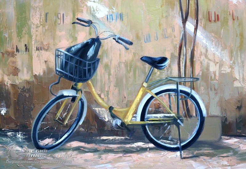 Tranh Sơn Dầu Vẽ Cô Gái Sửa Xe Đạp