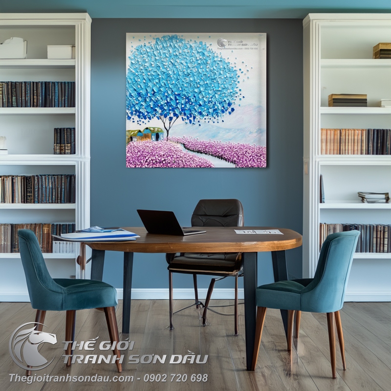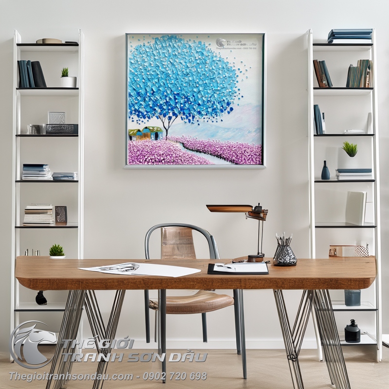 Tranh Sơn Dầu Phong Cảnh Cây Đắp Nổi Màu Tím
