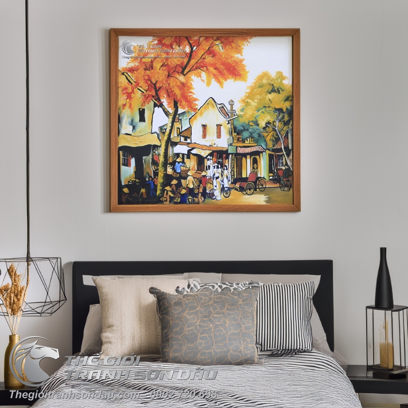 Tranh Sơn Dầu Phố Cổ Mùa Thu Xưa