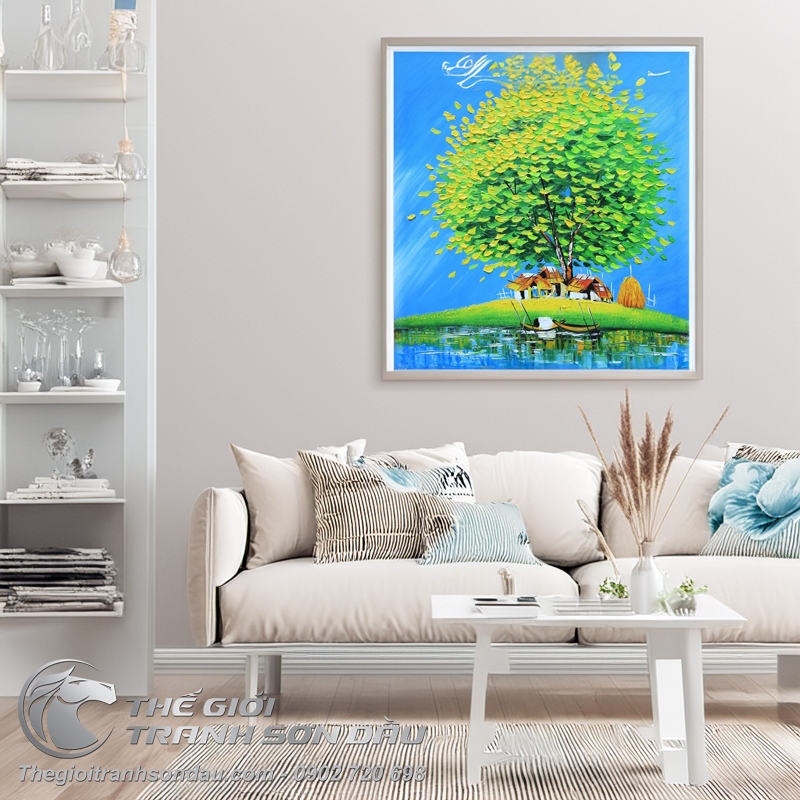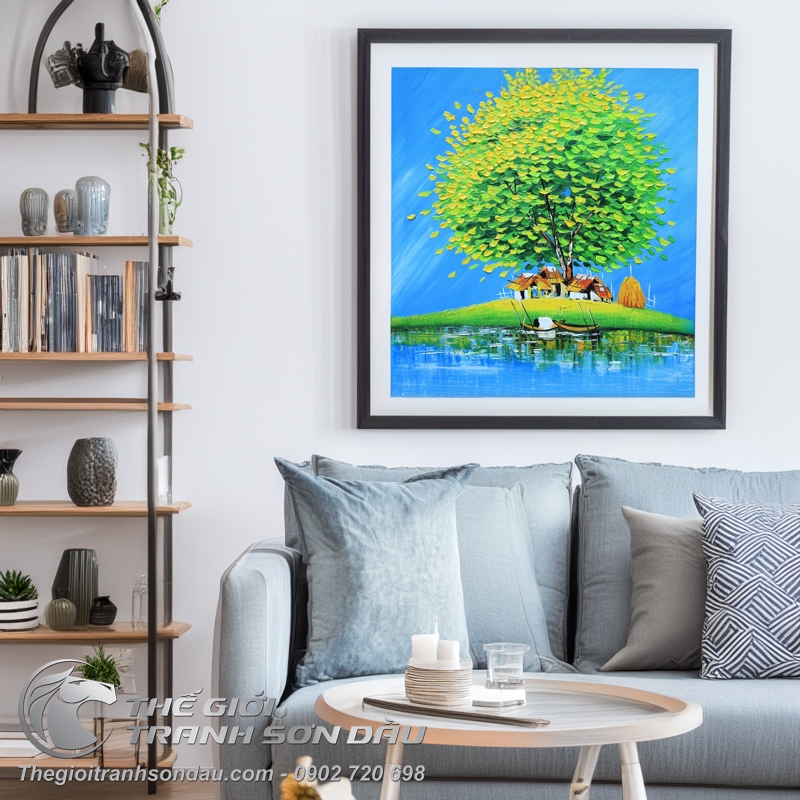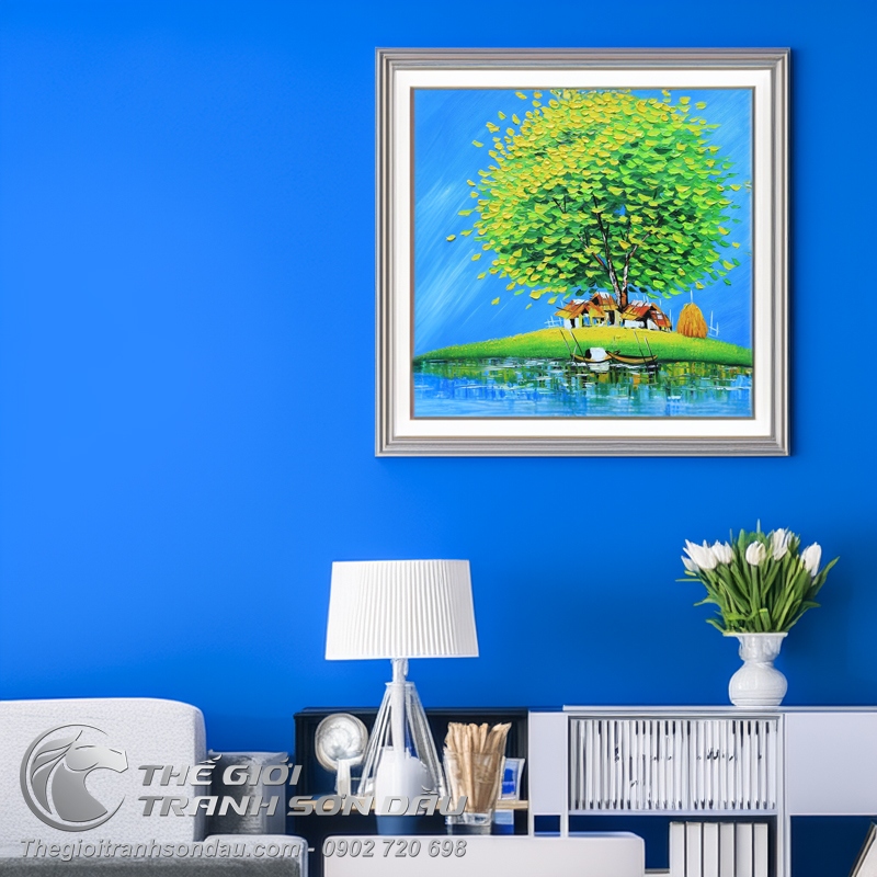 Tranh Sơn Dầu Cây Xanh Dương Phong Cảnh Việt Nam