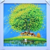 Tranh Sơn Dầu Phong Cảnh Cây Đắp Nổi Màu Xanh Lá