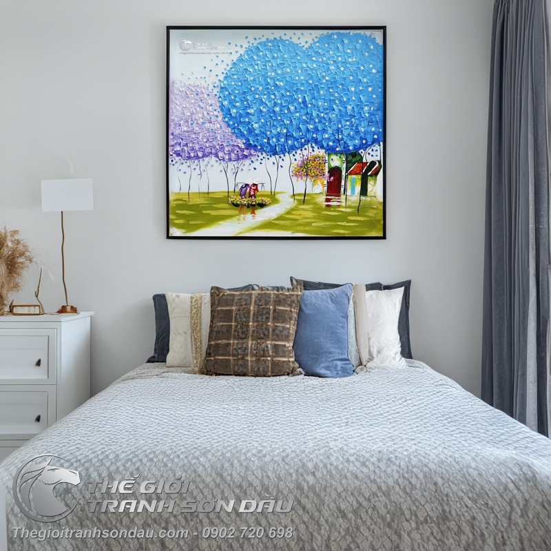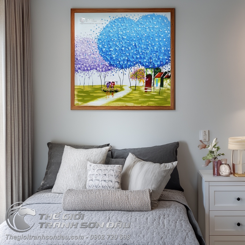Tranh Phong Cảnh Hiện Đại Phố Hoa Cây Xanh Lá