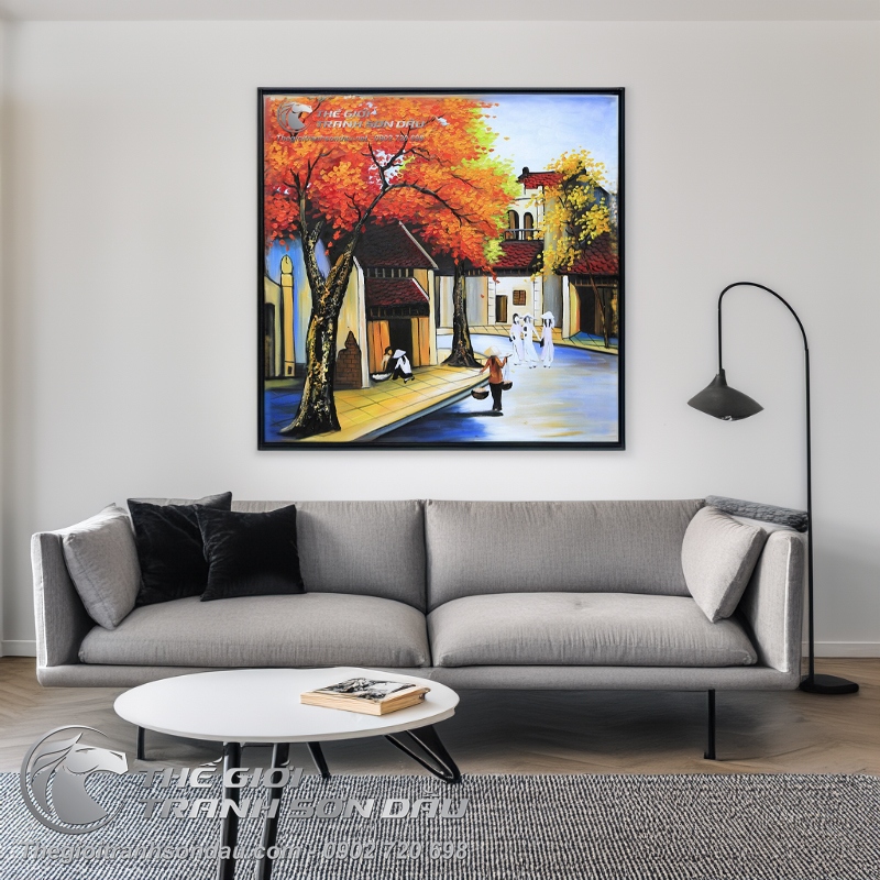 Tranh Sơn Dầu Phong Cảnh Phố Cổ Lá Vàng