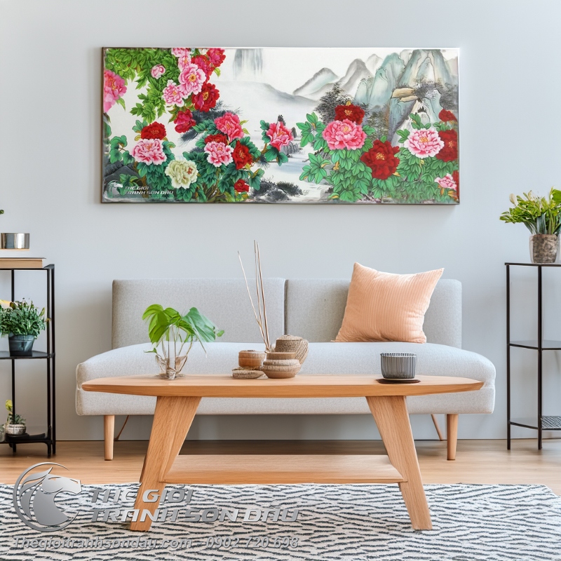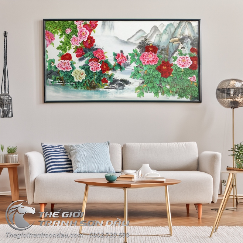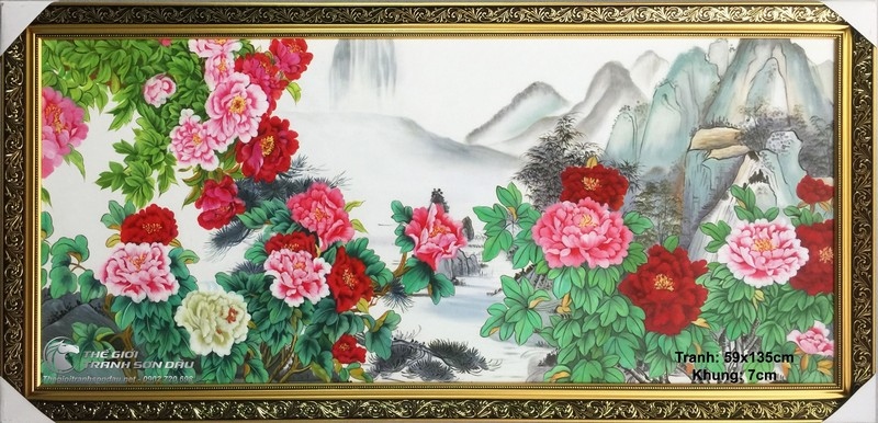 Tranh Sơn Dầu Phong Cảnh Thủy Mặc Vườn Hoa Mẫu Đơn