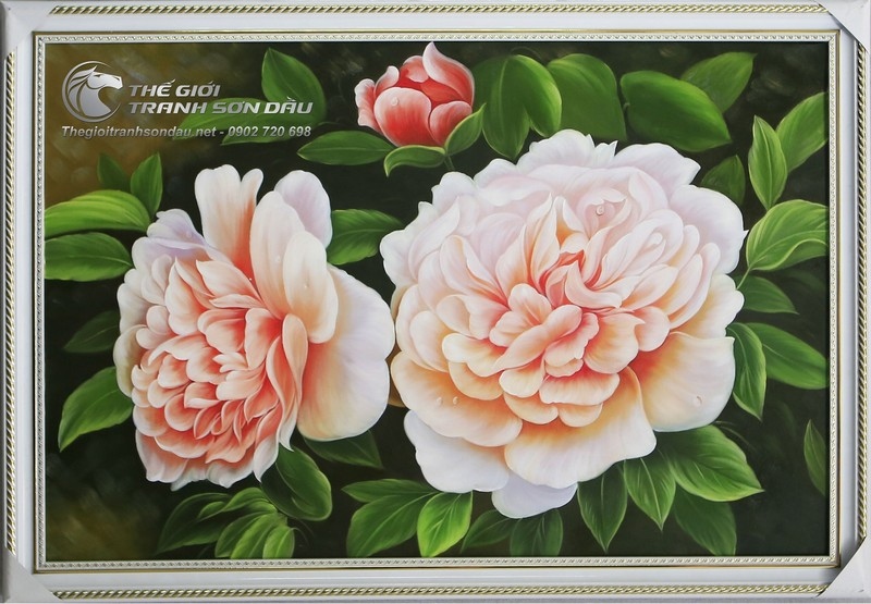 Tranh Sơn Dầu Phong Thủy Ba Bông Hoa Mẫu Đơn