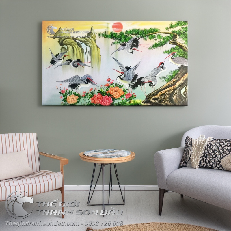 Tranh Chim Hạc Và Cây Tùng