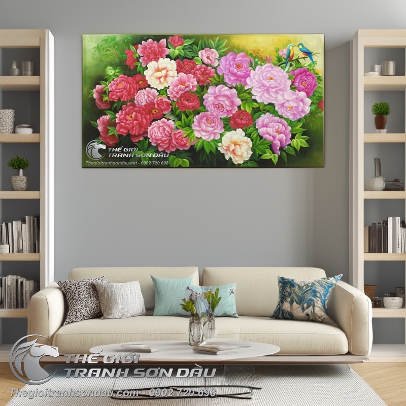 Tranh Sơn Dầu Phong Thủy Vườn Hoa Mẫu Đơn