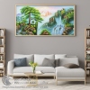 - Tranh sơn thủy treo tường T4H khắc họa khung cảnh thiên nhiên tráng lệ với những ngọn núi trùng điệp ẩn mình trong làn sương mờ ảo, những ngọn thác hùng vĩ bên hàng cây cổ thụ. Một bức tranh vừa có động, vừa có tĩnh được lồng ghép khéo léo vào nhau, nhiều ý nghĩa, giá trị nhân sinh, tính thẩm mỹ tạo nên sức hút mạnh mẽ với người xem tranh.
