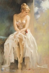 Tranh Sơn Dầu Thiếu Nữ Mang Đầm Tay Cầm Hoa