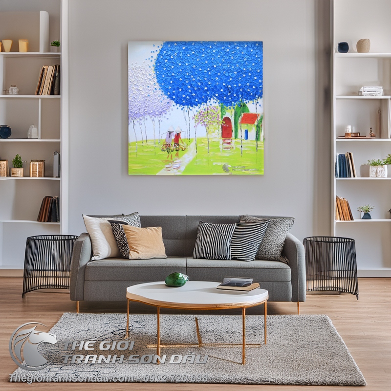 Tranh Sơn Dầu Cây Xanh Dương Phong Cảnh Việt Nam