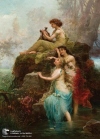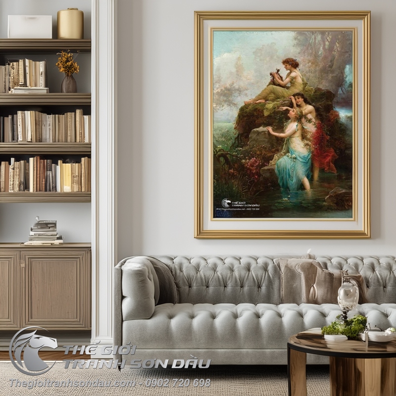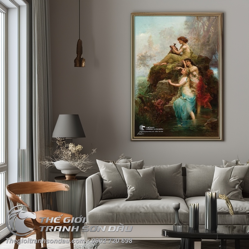 Tranh Sơn Dầu Vẽ 3 Thiếu Nữ Bên Dòng Suối