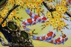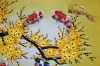 - Màu sắc trong tranh sử dụng chủ yếu là màu vàng của hoa mai, gam màu vàng tươi tạo ra cảm giác vui vẻ lạc quan & sống động. Màu vàng giúp thu hút sự chú ý của người xem tốt hơn, tạo nên sự tương phản thị giác tuyệt vời so với màu cam của đàn cá chép.